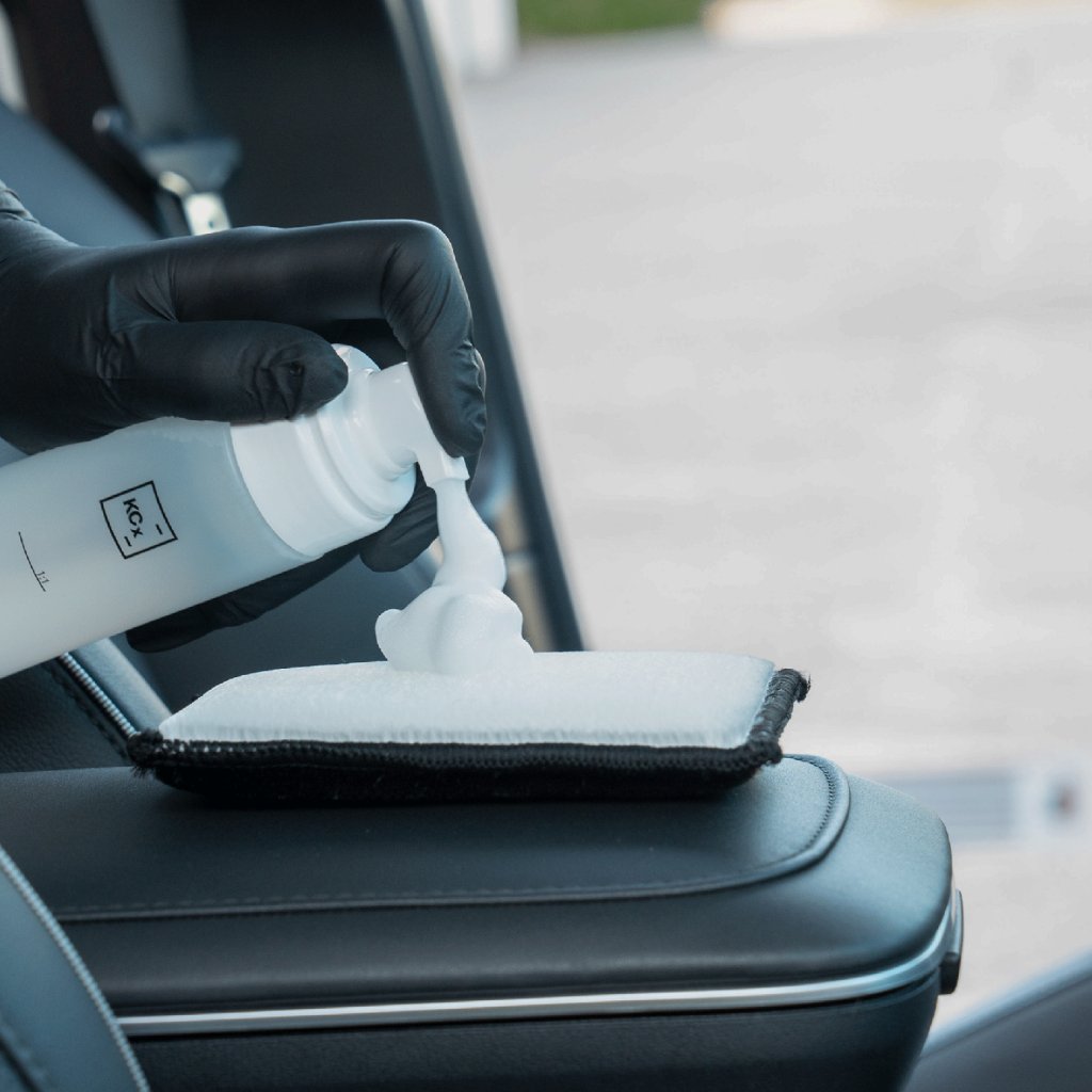 Príprava: Čistič prelejte do dávkovača peny (Foamer Bottle). Čistenie penou je k materiálu šetrnejšie a zabraňuje nadmernému premočeniu kože.