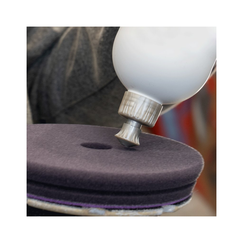 - Na vhodný leštiaci pad naneste približne päť kvapiek produktu.